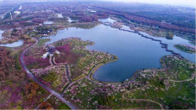 位于金山的花开海上生态园有3万多株梅花,主要分布在梅溪香岭、梅影曲径、梅宫探梅等景区。
