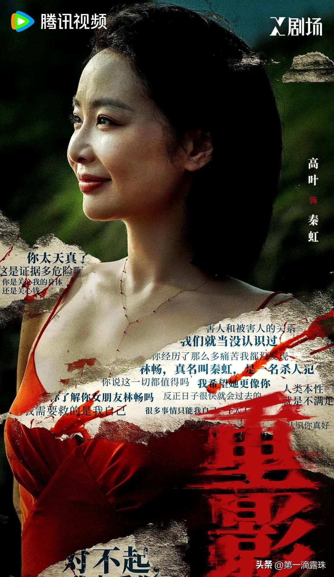高叶的秦虹可以说是一位“双面修罗”:白衬衫时,她是眼神清澈的林畅,换上皮裙红唇后,她便化身为冰冷的复仇者。尤其在一场雨夜逃亡戏中,她的眼神从恐惧转为狠厉,仅用三秒便征服了提前看片的观众。高叶在采访中表示:“这个角色没有绝对的善恶,每一次复仇都在与过去的自己切割,演起来既过瘾又痛苦。”